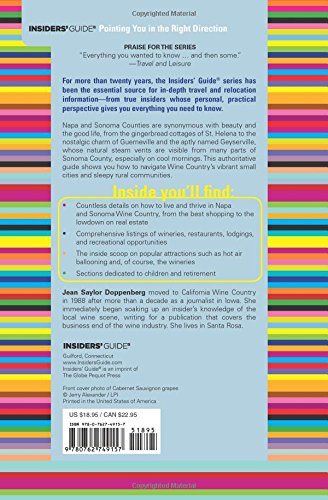 The essential source for in-depth travel and relocation information to Napa and Sonoma Counties. Written by a local (and true insider), Insiders’ Guide to California’s Wine Country offers personal guidance to two major wine regions and their environs. Fully revised and updated, this guide contains five maps of the wine country.