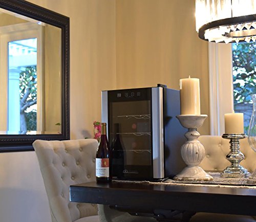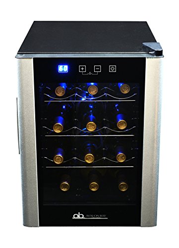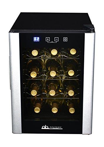 Avalon Bay AB-WINE12S Single Zone Wine Cooler The Avalon Bay AB-WINE12S Single Zone Wine Cooler is a state-of-the-art wine cooler designed for home use. Small, compact, and freestanding, the AB-WINE12S provides quick and easy access to your wine. It can hold up to 12 bottles of wine and the temperature can be adjusted to accommodate either red or white wine. The thermoelectric cooling system keeps it perfectly chilled and it comes with a special LED light that showcases your wine for your guests. If you're a devoted wine lover who enjoys a nice glass of wine with dinner, but lack the space for an enormous wine cooler in your home, then the Avalon Bay AB-WINE12S is the perfect wine storage solution. Special Features Single Zone CoolingAdjustable 51° - 64° Temperature RangeSilent Thermoelectric Cooling System3 Removable Chrome Shelves Stores 12 Standard Size Bottles of Wine Blue LED Light Temperature ControlThe Avalon Bay AB-WINE12S uses a thermoelectric cooling system to age your favorite vintage wines at ideal storage temperatures. The system can not only be set for any temperature between 51° and 64°F. It is also completely silent and vibration free, so nothing will disturb your wine while you store it. The temperatures are monitored and controlled by an LED display at the top of the cooler. It tracks the temperature of the cooler and allows you to adjust the temperature up or down using the clearly-marked push button controls. 12 Bottle Storage Capacity The AB-WINE12S weighs only 24 pounds, but can hold up to 12 standard size wine bottles. It comes with three chrome shelves. Each one can be completely removed in order to accommodate larger wine bottles. Sleek DesignThe Avalon Bay AB-WINE12S has a sleek, black and steel design that complements the look of any room it's placed in, whether it's your kitchen, home bar, living room, or wine cellar. There is a blue LED light at the top of the cabinet that illuminates your wine and a