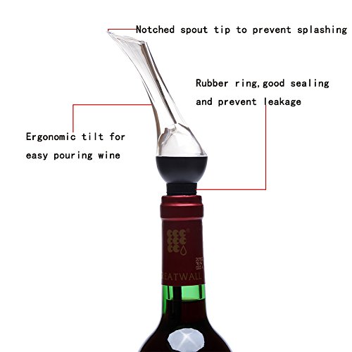 - SEALING STRONG,NO LEAKAGE. The unique design of Wine Aerator Pourer makes it suitable for all wine bottles. Rubber stopper is tapered to ensure that no leakage. Ergonomic design, easy to use and even easier to clean.