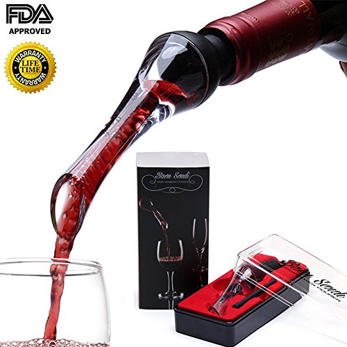 - FDA APPROVED MATERIALS and UPSCALE ELEGANT DESIGN. Stylish appearance,enhancing people drinking experience. Wine Aerator pourer made of high quality FDA approved materials, use safety, exquisite packaging and is the perfect gift for wine lovers.