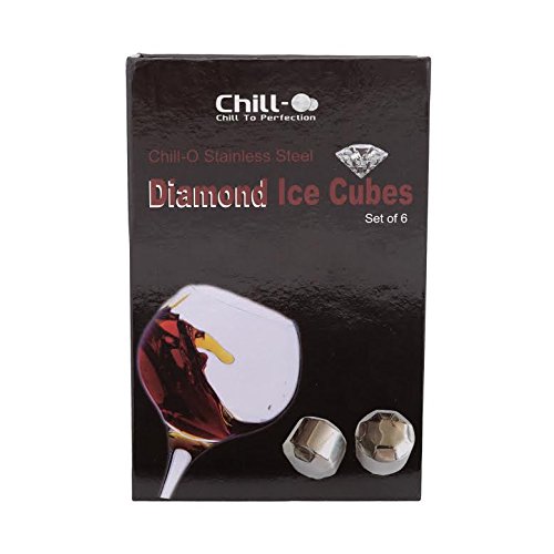 Chill-O Stainless Steel Diamond Ice Cubes Set of 6 Diamond Chillers - Wine Chillers -Whiskey Chillers - And Spirits Chillers