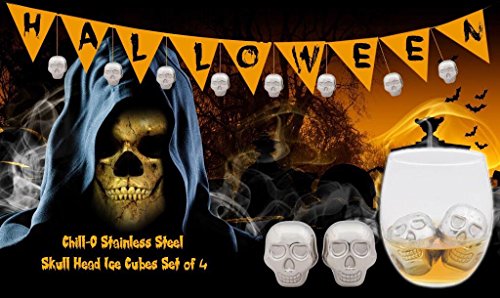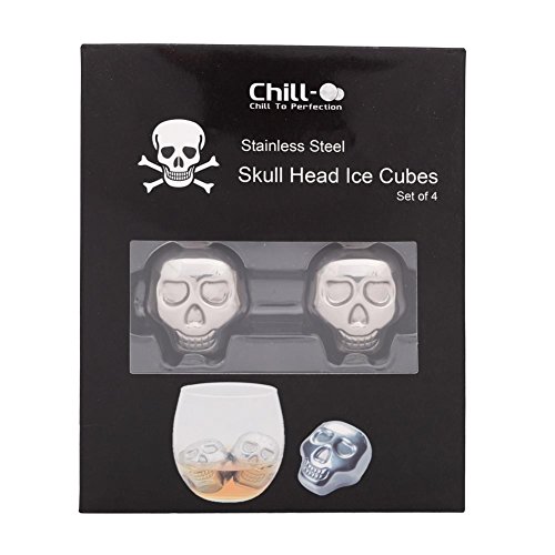 Chill-O Stainless Steel Skull Head Ice Cubes Set of 4 - Whiskey Chillers - Wine Chillers -Beer Chillers
