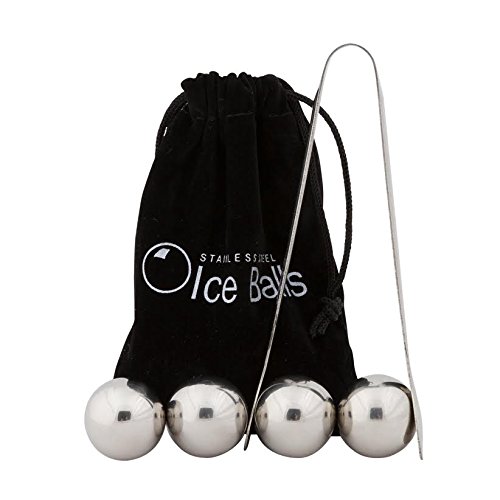 Whisky Ice Balls Made of Stainless Steel Will chill your whisky, wine, liquor vodka and spirits without diluting it. It will chill you drink and keep the original flavor. Just place these Balls in the freezer for a few hours, and put in to your glass of spirits, let stand for few minutes and enjoy! How to use: The Whisky Balls Are made of Food grade stainless steel 304 (FDA approved for food and drink Please wash Balls before first use. Please place them in the freezer for 4 hours or more . When ready, add to your drink and enjoy. To clean, rinse with warm water. Please Remove Balls Before Drinking They look great in the glass. The Balls stay at the bottom of the glass. The Balls don't add any flavors or smells. The stainless steel balls are 1" in diameter and weigh 0.66 ounces each