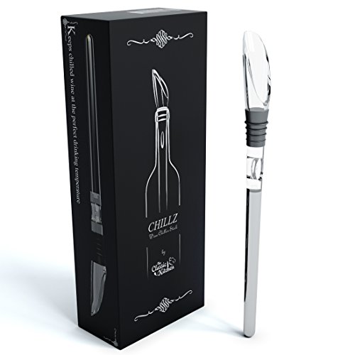 - SIMPLY THE BEST WINE AND BEVERAGE COOLER FOR THE MONEY - Chillz Wine Chiller stick and aerator (vent s or breathes wine), unique pourer (offers better taste) along with the built-in bottle stopper is designed to suit all wine glass bottles and make up the 3 in 1 function.