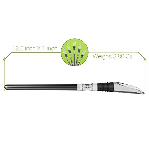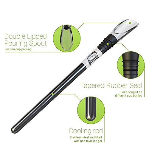 - HIGHEST QUALITY WINE DISPENSER - FDA approved; premium 304 stainless steel material. This ensures your wine will keep at prime level of aroma and taste due to aeration and temperature. * SIMPLE USE AND CARE - The chiller rod is hand-washable only. After cleaning, freeze the rod for at least 2 hours. After your wine has aerated for about 15 minutes, pour out some wine then insert the chiller stick into the bottle. This keeps your wine chilled and at peak flavor.