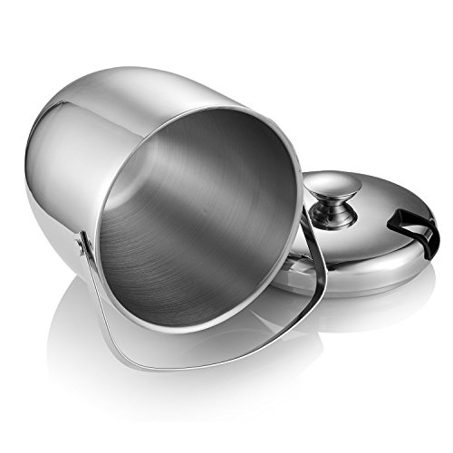 Both classic and contemporary, this ice bucket makes a bold statement on top of a bar, turning any occasion into a tasteful affair. Refresh drinks and impress guests when entertaining with this distinguished design. presenting a solid look with polished sheen. Both decorative and functional handles at the sides match the finial on the lid, featuring the stylish lines of understated rings that encircle the base and cover. A gift for house decor, housewarming,great wedding or holiday for contemporary house and party.