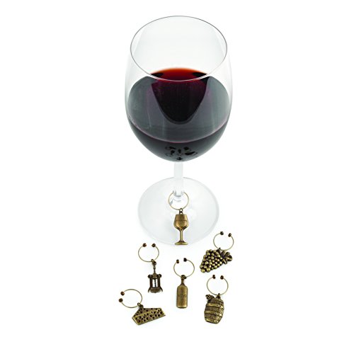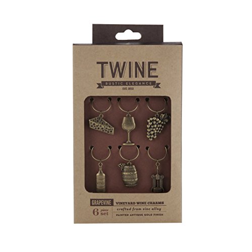 Keep track of your stemware with six vineyard-inspired wine glass charms. Guests love to choose their favorites - each gold-painted piece is unique and makes for a charming party favor.