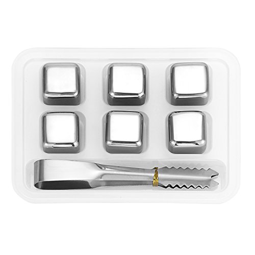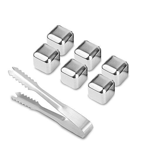 Kollea 6PCS Stainless Steel Chilling Reusable Ice Cubes for Whiskey Wine Drinks