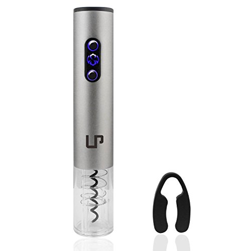 LP Electric Wine Bottle Opener with Removable Free Foil Cutter Wine Foil Pourer and Stopper , silver Grey