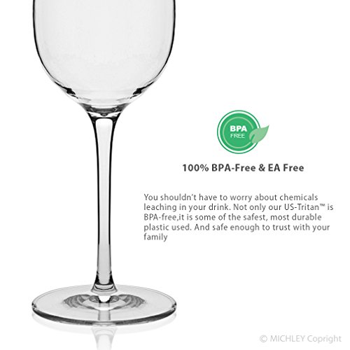 - SAFETY - Made by Shatterproof Tritan Plastic, Not only is MICHLEY a BPA-free Wine Glasses, it does not Contain BPS (Bisphenol S) or any other Bisphenols. Be free of any Estrogenic and Androgenic Activity (EA-free). Combine that with Shatter Resistance, and You have got a tough Wine Glasses that is Safe Enough to Trust with Your Family and Friend.