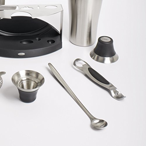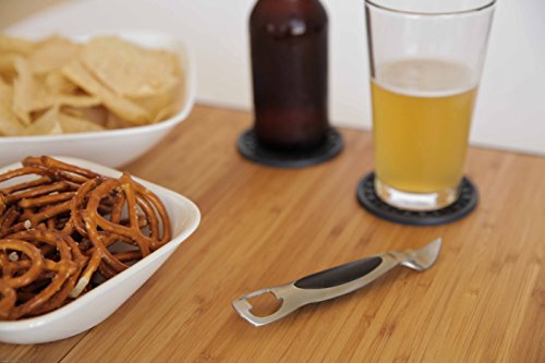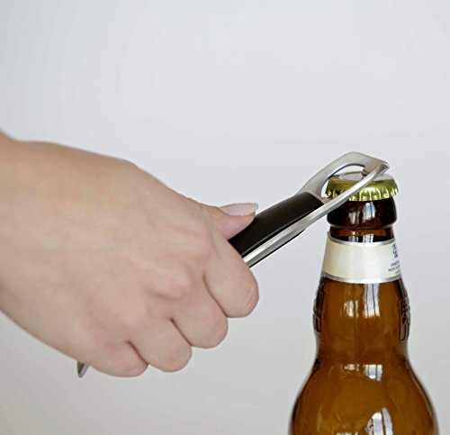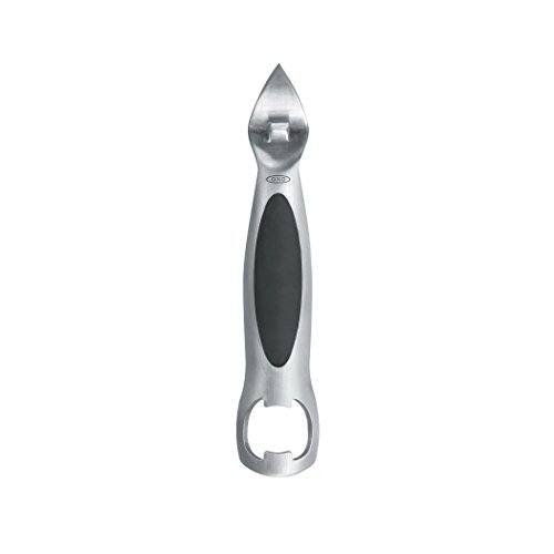 Sleek lines, soft curves and brushed stainless steel bring function and style to the OXO Steel Bottle Opener. The Bottle Opener has two functional ends, one for opening bottles and the other for punching cans. Soft, non-slip grip.