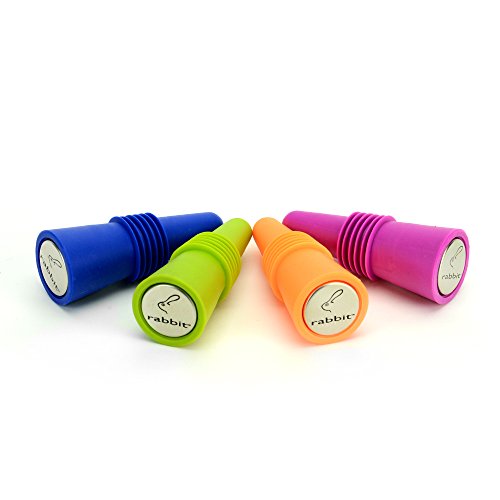 Rabbit Wine and Beverage Bottle Stoppers (Assorted Colors, Set of 4)