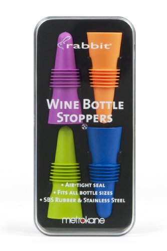 Keep beverages and other liquids fresh with the Rabbit Wine and Beverage Bottle Stoppers. These wine bottle stoppers provide an air-tight seal to prolong and preserve opened bottles of wine. Designed to fit all bottle types. These stoppers insert easily and remove with a single pull. Constructed of durable rubber and stainless steel that won't rust, crack or fade. Dishwasher-safe for easy cleaning.