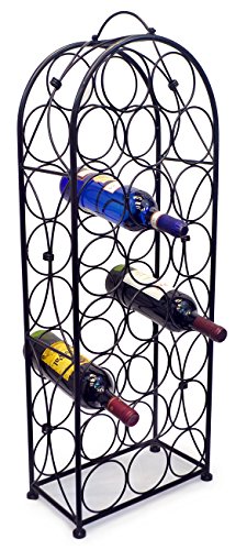 - Arched, free-standing wine rack stores up to 23 bottles of your favorite wine