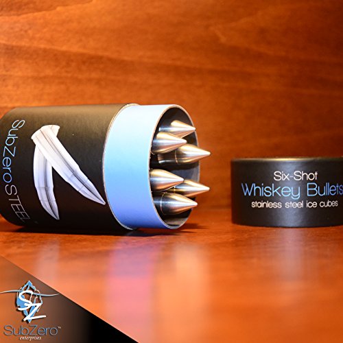 SubZero Steel Solid Stainless Steel Bullet Shaped Whiskey Stones - Set of 6 - Whiskey Chillers - Wine Chillers - Alcohol Ice Cubes - Whiskey Stones