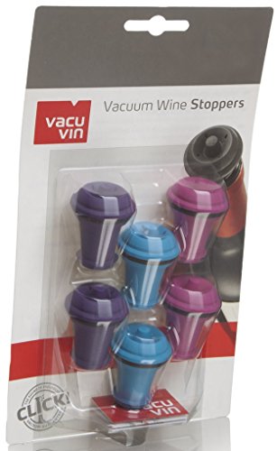 The Vacu Vin Stoppers are constructed from high-quality, food approved rubber that is dishwasher safe. They are extremely robust and will tolerate regular and prolonged usage. The cap on the top of the stoppers can be removed in order to aid cleaning. As well as the colored versions, the set of 6 can also be purchased in traditional grey. In addition, the grey stoppers are available in a set of 2 and the colored versions in a set of 3 (1 of each color).