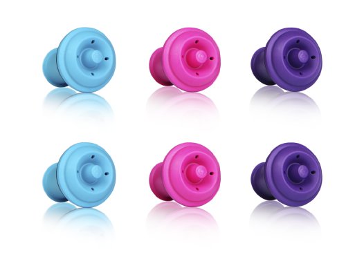 Vacu Vin Wine Saver Vacuum Stoppers, Set of 6 - Purple / Blue / Pink