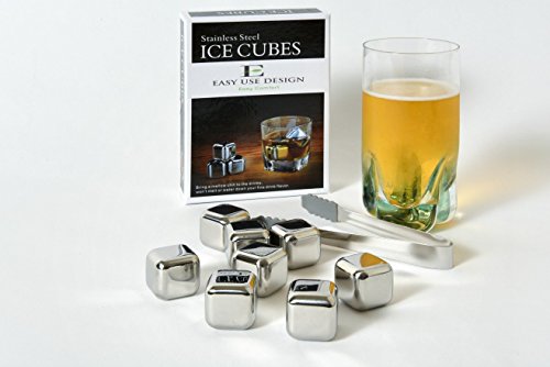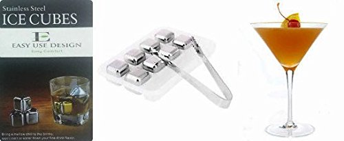 Whiskey Stones by EasyUse Design | Stainless Steel Whiskey Stones with Plastic Storage Box Gift Set | Professional Tongs | Reusable Ice Stones , Ice Stone cubes & Chilling Cubes - Set Of 8