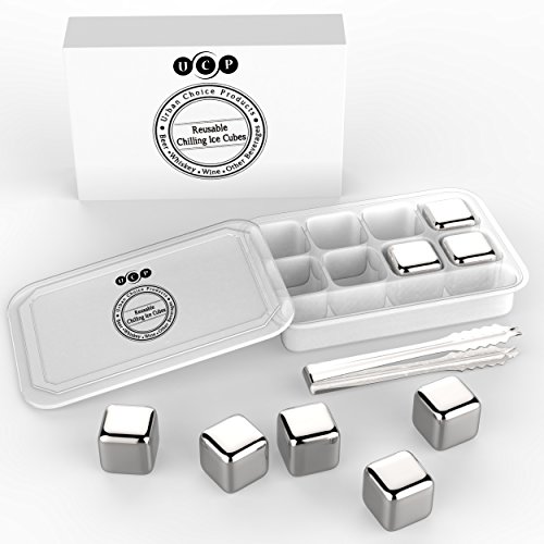 Whiskey Stones Set of 8 Urban Choice Products Reusable Ice Cubes Stainless Steel Drink Coolers with Tongs for Wine Soda