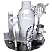 - Includes 18.6oz Cocktail Shaker, Strainer, Bottle Opener, Corkscrew, Double Jigger, Ice Tongs, and Stainless Steel Rack