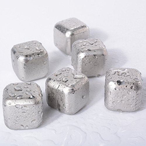 Xcellent Global 6 Pack Stainless Steel Shell Whiskey Chilling Reusable Ice Cubes for Whiskey Wine, Chilling Your Drink without Diluting - Perfect as New Years, Christmas, Valentine's Day, Wedding, Father's Day, Birthday Gift M-HG067