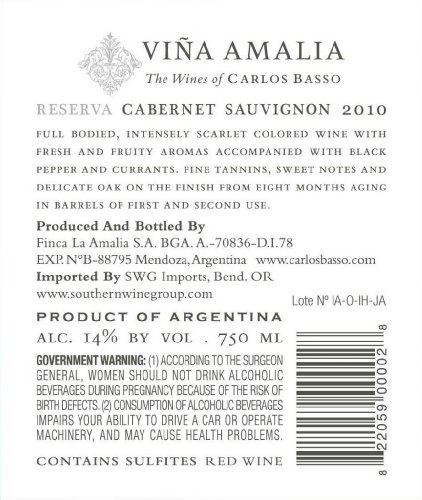 2010 Vina Amalia Cabernet Sauvignon, Mendoza 750 mL