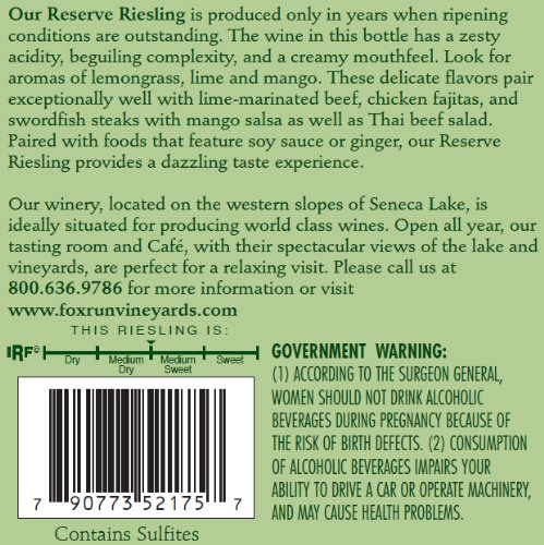 2011 Fox Run Vineyards Riesling Reserve 750 mL