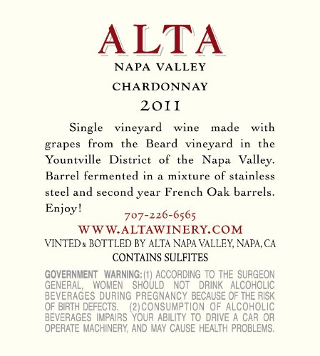 2012 Alta Napa Valley Chardonnay 750 mL Wine