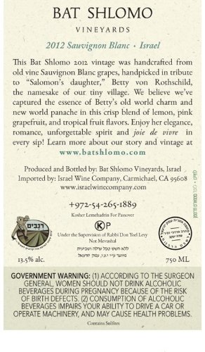 2012 Bat Shlomo Israel Sauvignon Blanc 750 mL