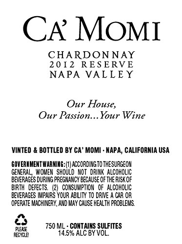 2012 Ca'Momi Reserve Napa Valley Chardonnay 750 mL Wine