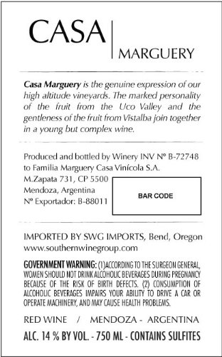 2012 Marguery Casa Malbec, Mendoza 750 mL