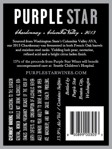 Bud break occurred much earlier than normal, with above average temperatures leading through mid September. At this point we experienced a period of cooler temperatures extending harvest in to early November with well balanced ripeness. Paying It Forward: As a family we find ourselves blessed with good health. Our good fortune, however, comes with a realization that others are less fortunate. As a result we have chosen to donate 15% of Purple Star Wines’ proceeds to Seattle Children’s Hospital to benefit uncompensated care—a gesture we hope will lighten the financial burden of families overwhelmed by the expenses associated with critical medical care. It’s our way of “paying it forward.”