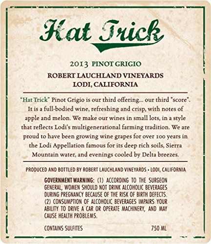 2013 Robert Lauchland Vineyards Hat Trick Pinot Grigio 750 mL