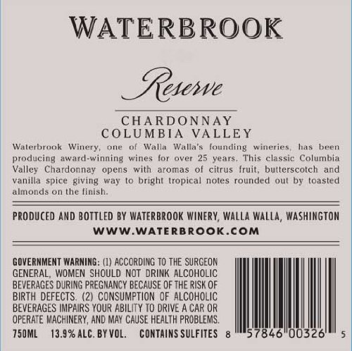 2014 Waterbrook Reserve Chardonnay Columbia Valley 750 mL