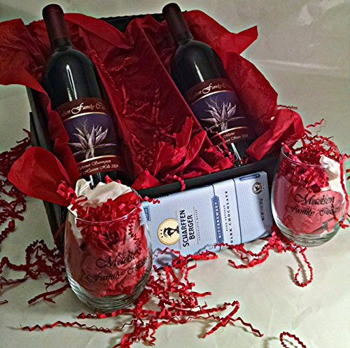 Madsen Family Cellars Bordeaux Style Gift Set with Scharffen Berger Chocolate & 2 Wine Glasses, 2 x 750 mL