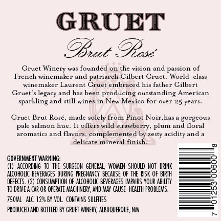 NV Gruet Brut Rose, Methode Champenoise 750 mL