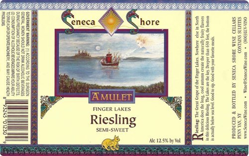 NV Seneca Shore Wine Cellars Riesling - Semi-Sweet (Blue Bottle), Finger Lakes Table Wine, 750 mL